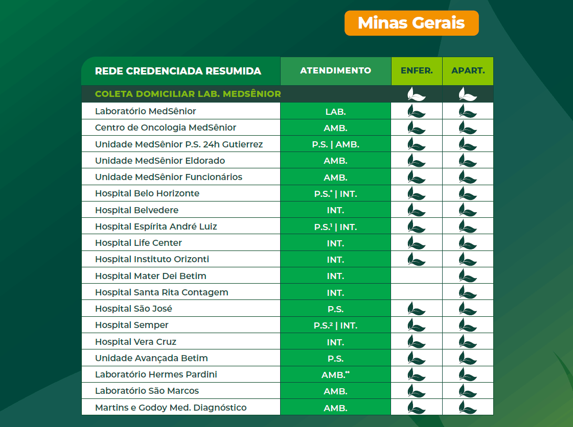 Se você procura uma rede credenciada maior e com o preço acessível, você pode escolher o MedSênior DF3 Enfermaria. O plano conta com uma ampla cobertura ambulatorial e Hospitalar, com os melhores médicos à sua disposição.